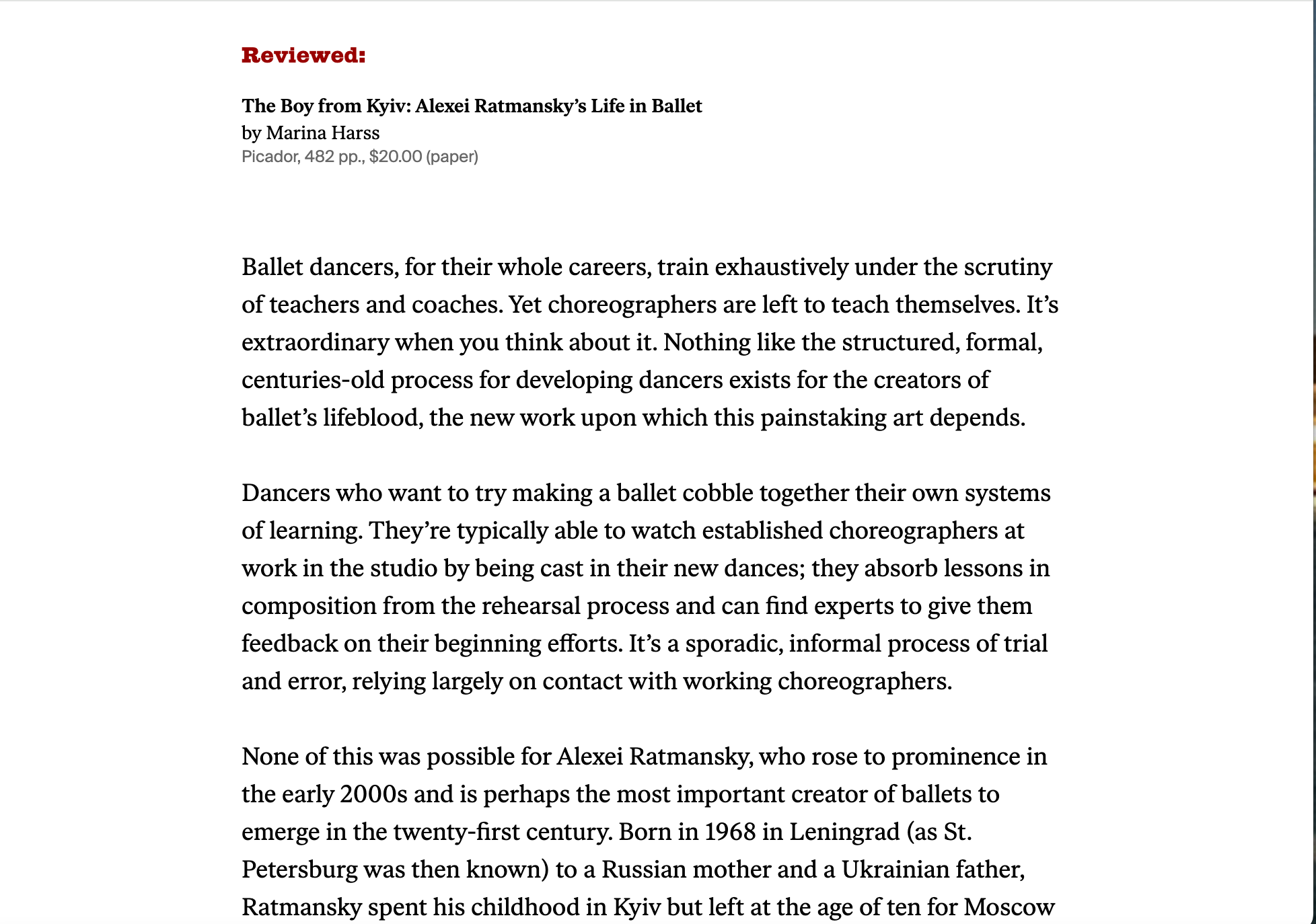 Quite out of the blue, I see that the New York Review of Books has published a review of “The Boy from Kyiv” by the esteemed Sarah Kaufman, formerly dance critic for The Washington Post. A nice post-Xmas present :-)